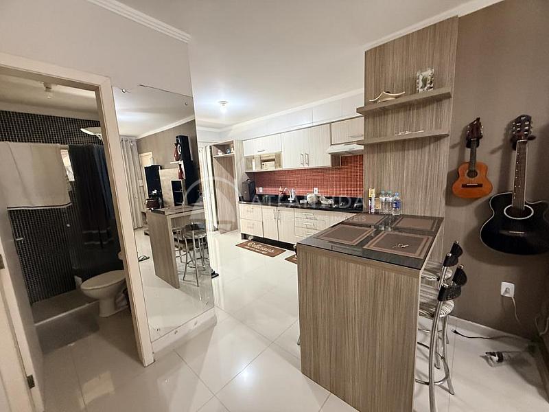 Apartamento térreo mobiliado, com 2 dormitórios, sala, cozinha, banheiro social, área nos fundos com pátio privativo e churrasqueira a carvão, além de 1 vaga de garagem privativa coberta.