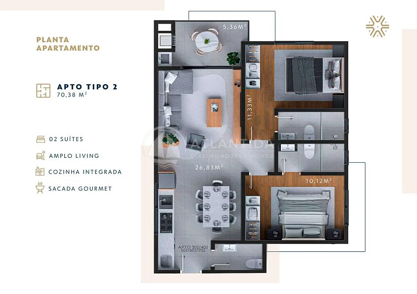 70,38 m² de área privativa