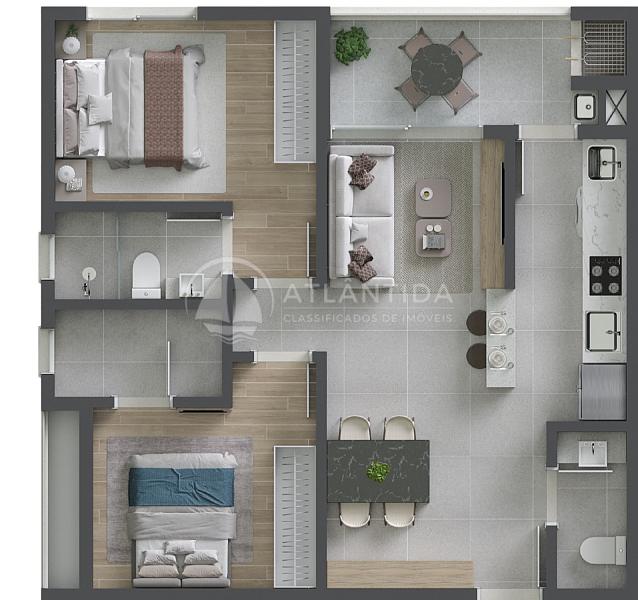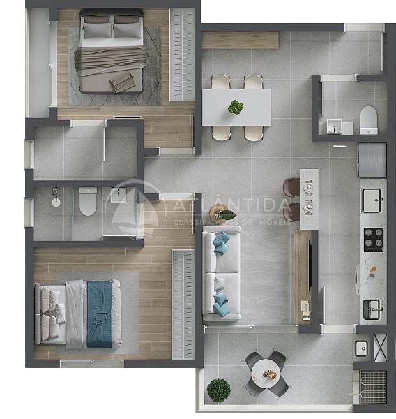 2 dormitórios (2 suítes)