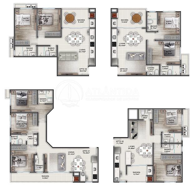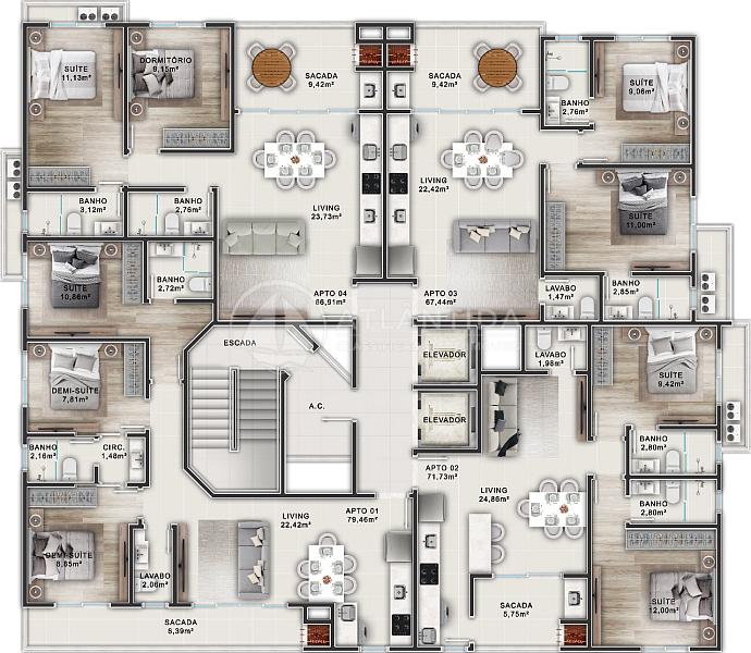 Os apartamentos contam com plantas diferenciadas de 2 suítes e 1 vaga e também plantas com 3 suítes (demi) e 2 vagas, proporcionando privacidade e comodidade. A sala é ampla e bem iluminada, perfeita para momentos de lazer e convivência. A cozinha é funcional e integrada, facilitando o dia a dia.