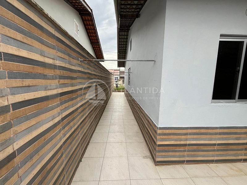 Casa com 3 dormitórios, sala, cozinha, bwc social, área coberta nos fundos com área de serviço, pátio na lateral e frente do imóvel e 1 vaga de garagem privativa.