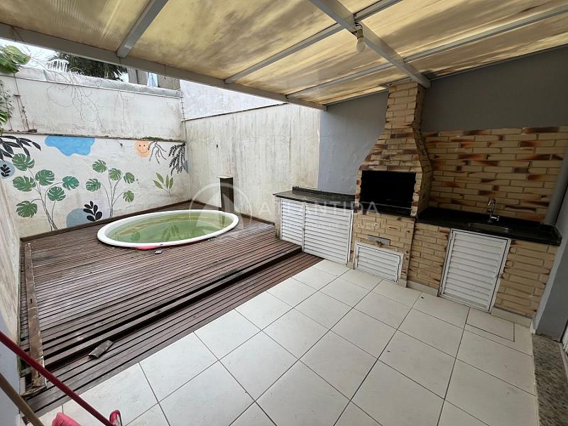 Sobrado amplo semimobiliado com 2 dormitórios (um deles com sacada frontal), sala, cozinha com mobilia, lavabo, bwc social, área de serviço, área externa com churrasqueira e jacuzzi e 2 vagas de garagem privativas.